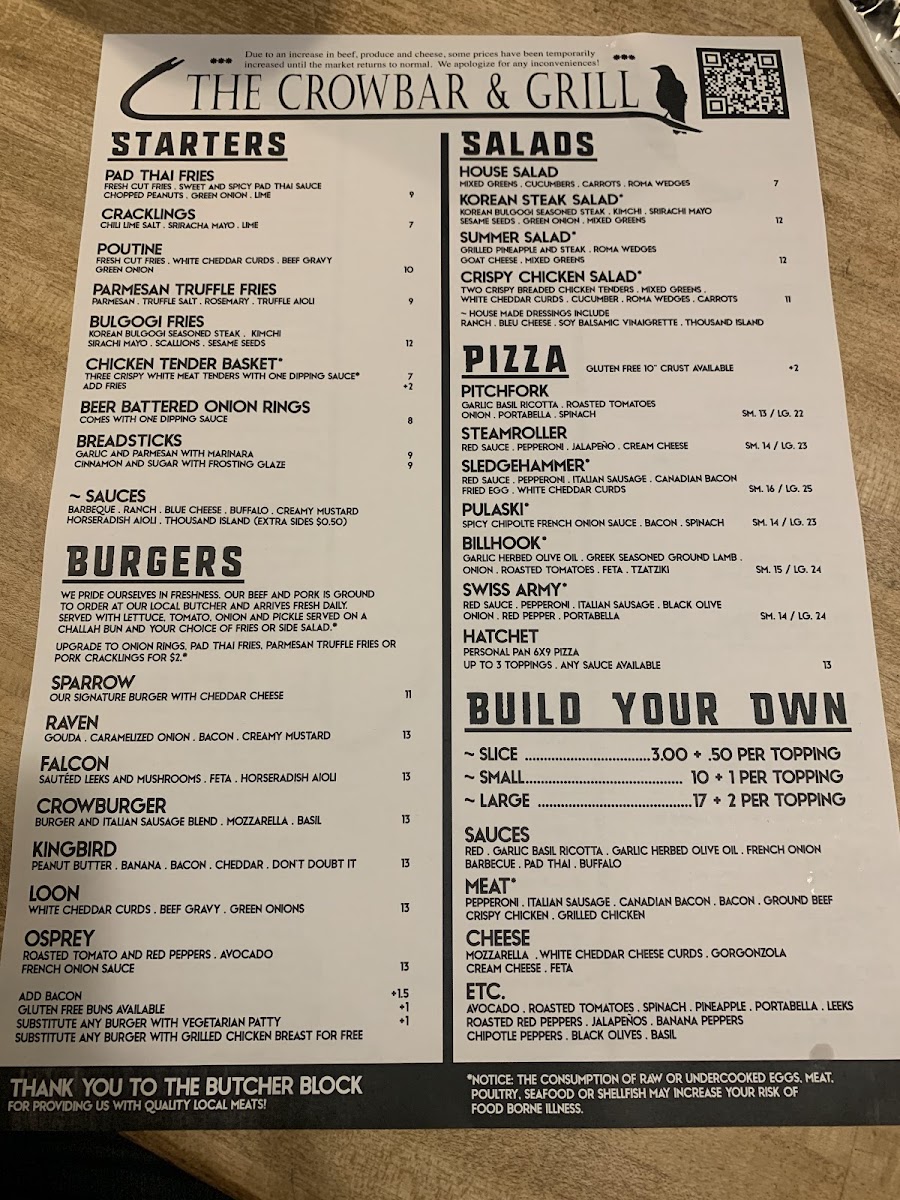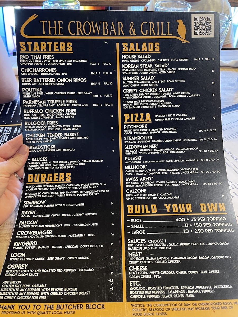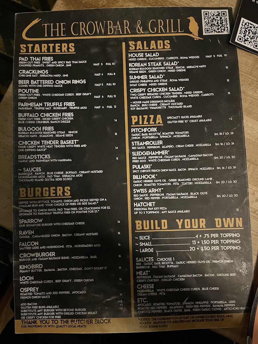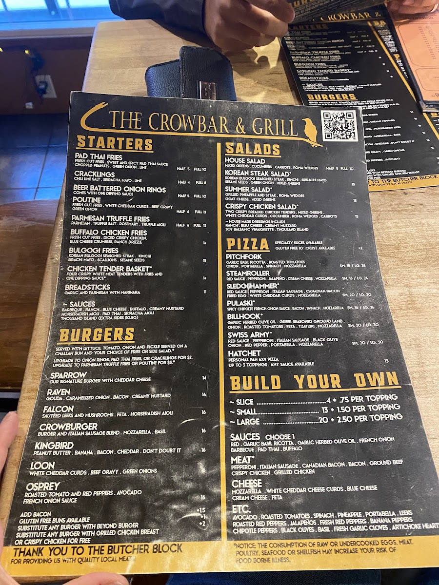 Welcome to Crowbar & Grill, a culinary gem nestled in the heart of Laramie, Wyoming. This vibrant eatery offers a menu rich in flavor and creativity. The standout dishes like the Sledgehammer pizza showcase imaginative toppings that elevate traditional recipes, while poutine fries and pad thai fries deliver an unforgettable twist on comfort food.